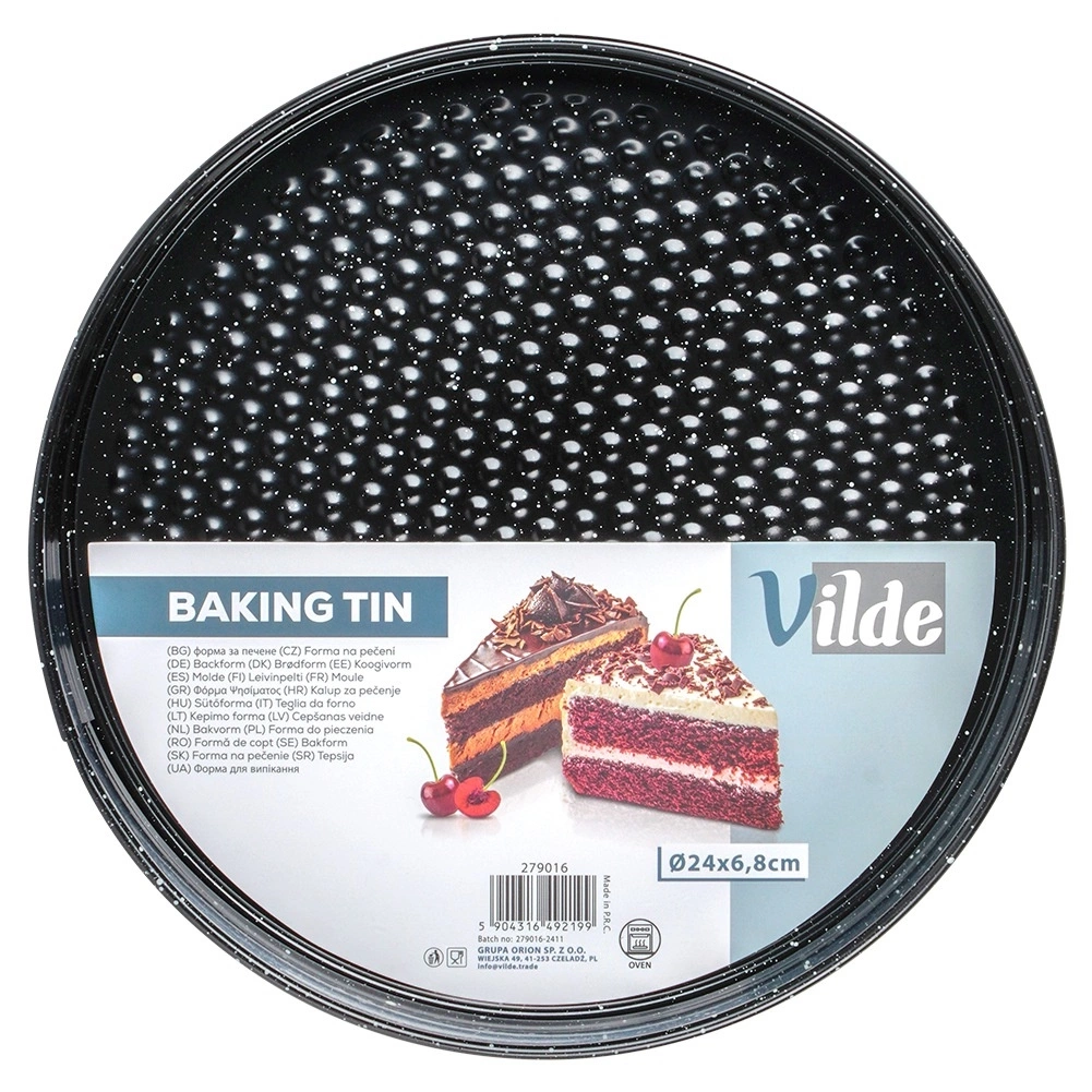 Okrągła tortownica do pieczenia ciast i tortów. Rozpinane boki zapewnią wygodne wyciąganie upieczonego ciasta, ale także przydadzą się podczas mycia formy. Niezbędna w każdym domu. Wykonana z najwyższej jakości materiałów, co zapewni komfort użytkowania. Oryginalny produkt marki Vilde. Wyprodukowano zgodnie z europejskimi standardami.