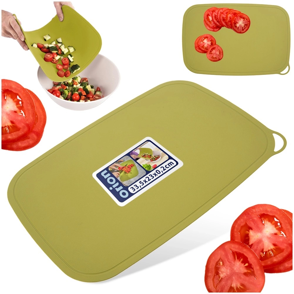 Deska ma formę elastycznej podkładki, którą można w łatwy sposób wygiąć, co ułatwia przerzucanie pokrojonych produktów. Dzięki niej łatwo utrzymamy blat w czystości i ochronimy go przed zarysowaniami. Deska, dzięki swojej funkcjonalności, będzie często wykorzystywana w kuchni. Wykonana z materiałów bezpiecznych dla zdrowia i neutralnych dla żywności. Oryginalny produkt czeskiej marki Orion. Wyprodukowano zgodnie z europejskimi standardami.