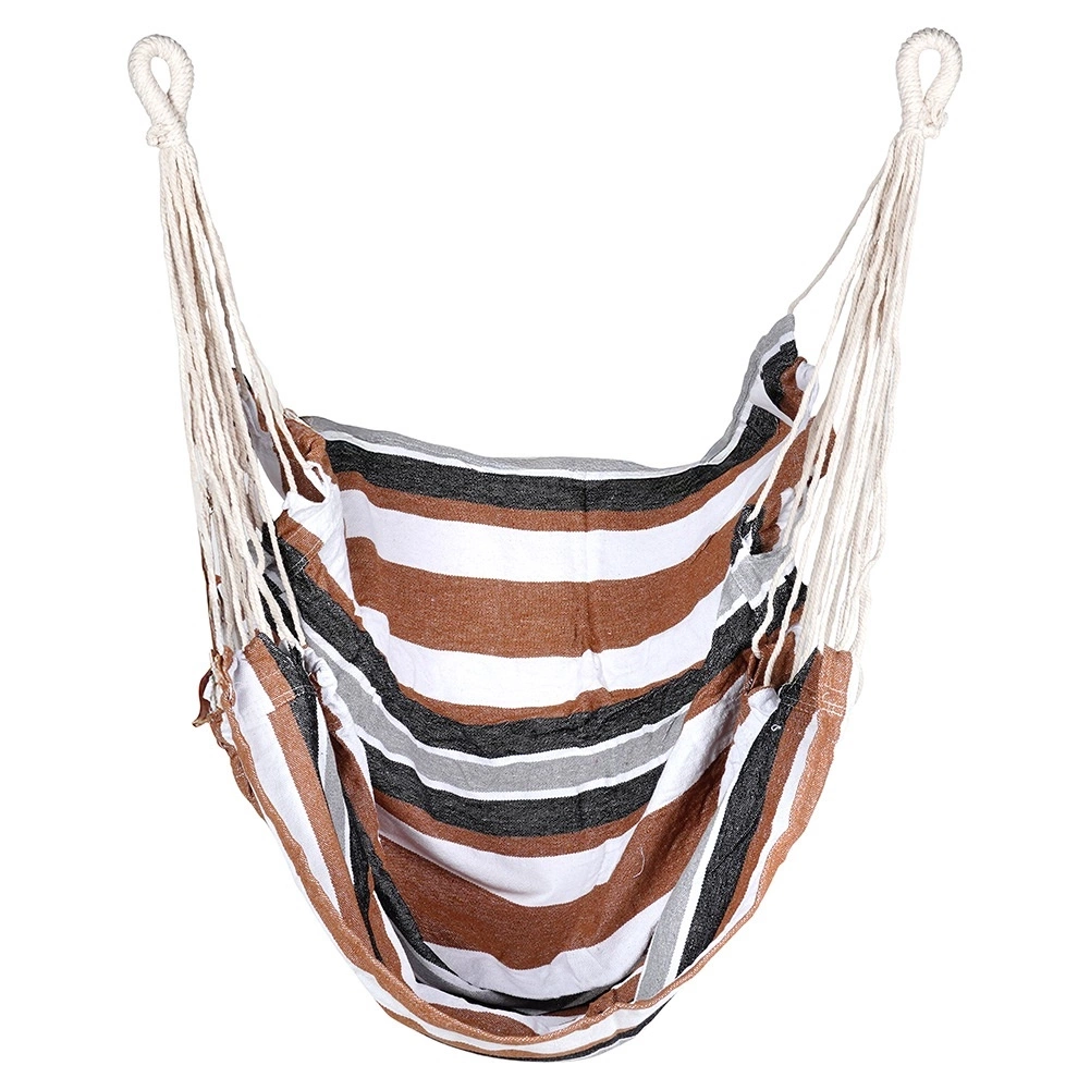 - Hamak brazylijski do zawieszenia - Solidny i wygodny hamak brazylijski w formie podwieszanego fotela. Idealny do ogrodu jak również na balkon, taras, do altany czy nawet w domu. Wymiar materiału tworzącego hamak wynosi 96 x 130 cm w zestawie sznurki mocujące.