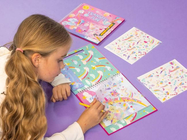 Kraina Fantazji Zestaw do Kalkomanii marki Floss & Rock zawiera ponad 150 fantastycznych grafik, 6 kolorowych scen, 6 stron do dowolnego rysowania oraz ołówek. Otwórz książkę oprawioną w spiralę, a znajdziesz wszystkie kalki starannie przechowywane w kieszeni. Wybierz ilustrację, przewróć strony i znajdź idealną scenę, na którą chcesz je przenieść. Następnie użyj dołączonego ołówka, a jak za dotknięciem czarodziejskiej różdżki rysunki przeniosą się na stronę! Spędź godziny, rozwijając swoją wyobraźnię, tworząc wspaniałe obrazy z syrenkami, jednorożcami, zabawnymi rybami i innymi fantastycznymi postaciami!