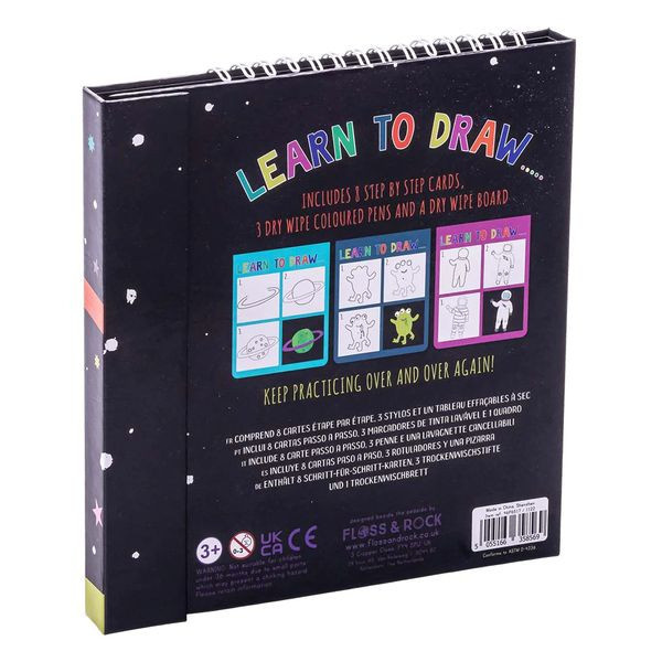 Wspaniały zestaw do nauki rysowania dla dzieci w prosty i zabawny sposób zachęci dziecko do rozpoczęcia przygody z nauką rysowania. Zestaw zawiera 8 grubych, błyszczących stron, 3 kolorowe suchościeralne pisaki z gumkami oraz sekcję do rysowania i kolorowania. Sposób narysowania każdej ilustracji przedstawiony jest w trzech prostych krokach, dzięki czemu nauka rysowania będzie dla każdego malucha łatwa i przyjemna. Zmazywalne strony pozwalają trenować bez końca. Zestaw składa się na płasko, posiada praktyczne magnetyczne zamknięcie i idealnie sprawdzi się w podróży. Zapraszamy do zabawy!