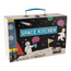 Zestaw do herbaty Kosmos ozdobiony wspaniałymi, kolorowymi ilustracjami z motywem kosmosu to gwarancja świetnej zabawy! W kolorowej metalowej walizeczce, która może służyć jako płyta do gotowania, znajdują się: dwie filiżanki, dzbanek do kawy z pokrywką, dwa talerze, patelnię, naczynie do piekarnika, trzepaczkę i łopatkę. Zestaw herbaciany pozwala na zabawę w dom i odgrywanie ról, stanowiąc również świetną propozycję zabawy dla grupy dzieci. Uczy umiejętności społecznych i nawiązywania relacji. Walizeczka wyposażona jest w poręczny uchwyt, dzięki czemu można je łatwo przenosić z miejsca na miejsce.