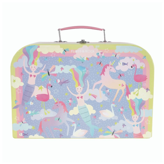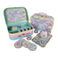 Zestaw do herbaty ozdobiony wspaniałymi, kolorowymi ilustracjami z motywem Krainy Fantazji to gwarancja świetnej zabawy! W kolorowej metalowej walizeczce znajduje się fantastyczny grający czajniczek z melodią „Twinkle Twinkle Little Star”, cztery filiżanki, cztery spodki, cztery talerze i jedna taca. Zestaw herbaciany pozwala na zabawę w dom i odgrywanie ról, stanowiąc również świetną propozycję zabawy dla dzieci w grupie. Uczy umiejętności społecznych i nawiązywania relacji. Walizeczka wyposażona jest w poręczny uchwyt, dzięki czemu można je łatwo przenosić z miejsca na miejsce.