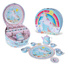 Zestaw do herbaty ozdobiony wspaniałymi, kolorowymi ilustracjami z motywem Tęczowych Wróżek to gwarancja świetnej zabawy! W owalnej walizeczce znajdują się: grający czajniczek z pokrywką, cztery filiżanki ze spodkami oraz duża taca. Urocza melodia „You are my Sunshine” będzie towarzyszyła podczas nalewania herbatki. Zestaw herbaciany pozwala na zabawę w dom i odgrywanie ról, stanowiąc również świetną propozycję zabawy dla dzieci w grupie. Uczy umiejętności społecznych i nawiązywania relacji. Walizeczka wyposażona jest w poręczny uchwyt, dzięki czemu można je łatwo przenosić z miejsca na miejsce.