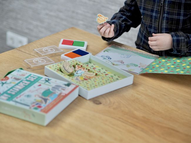 Odkryj swoją kreatywność dzięki temu wspaniałemu zestawowi kolorowych pieczątek i książeczki! Stwórz niesamowite scenki i opowiedz historie, korzystając z 8 zabawnych pieczątek, 4 kolorowych poduszek z tuszem oraz 24-stronicowej kolorowej książeczki. Wszystko to starannie zapakowane w poręczne pudełko z wysuwaną szufladką i wygodną rączką do przenoszenia.