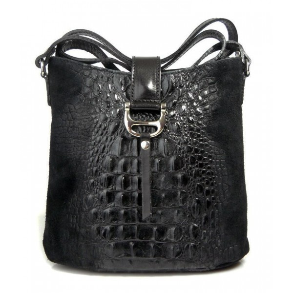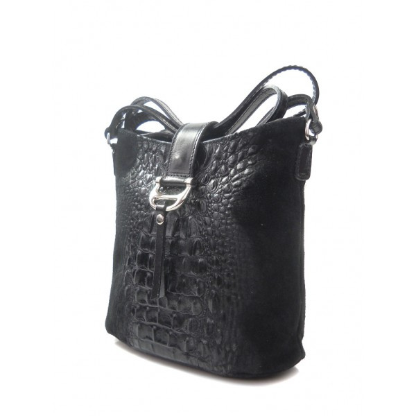 wykonana ze skórki naturalnej zamszowej z motywem krokodyla,
