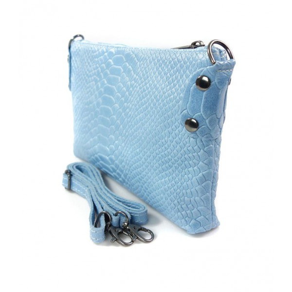 Skórzana włoska listonoszka ,wężowa skórka,frędzelki błękitna LP149BC