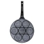 - Energooszczędne smażenie - Doskonałe przewodnictwo materiału eliminuje straty ciepła, a tym samym pozwala to na oszczędność czasu potrzebnego do przygotowania potrawy. Patelnia jest skonstruowana w taki sposób, że ciepło rozchodzi się równomiernie po jej powierzchni. Przygotujemy na niej jajka sadzone, placuszki, a także ulubione naleśniki typu pancakes w idealnym, okrągłym kształcie.