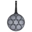 - Praktyczna patelnia do jajek - Patelnia idealna do przygotowywania jajek sadzonych i placuszków. Patelnia z linii Basic Line o średnicy 26 cm z siedmioma dedykowanymi otworami o średnicy 8 cm, pozwala uzyskać perfekcyjny kształt potraw. Wymiary zewnętrzne: długość 46 cm, wysokość patelni 1,5 cm, wysokość z rączką 6 cm.