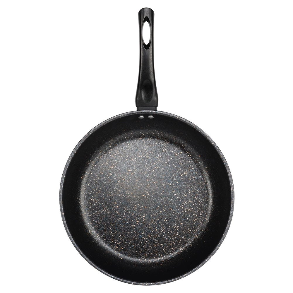 - Nieprzywierająca powłoka granitowa - Patelnia wykonana z aluminium z nieprzywierającą powłoką granitową w czarnym kolorze. Powierzchnia nieprzywierająca umożliwia przygotowywanie zdrowych i smacznych posiłków z minimalną ilością tłuszczu. Uchwyt wykonany z tworzywa w czarnym kolorze.