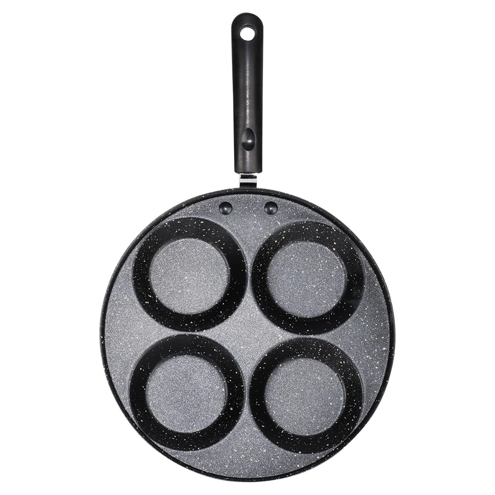 - Praktyczna patelnia do jajek - Patelnia idealna do przygotowywania jajek sadzonych i placuszków. Patelnia z linii Basic Line o średnicy 24 cm z czterema dedykowanymi otworami o średnicy 9 cm, pozwala uzyskać perfekcyjny kształt potraw. Wymiary zewnętrzne: długość 40 cm, wysokość patelni 2 cm, wysokość z rączką 3,5 cm.