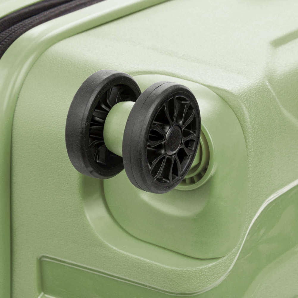 Kolekcja została stworzona z odpornego na uszkodzenia, wysokiej jakości polipropylenu. Materiał jest lekki i elastyczny, co znacznie wypływa na komfort użytkowania. Na froncie walizki znajduje się oryginalny napis z nazwą marki.