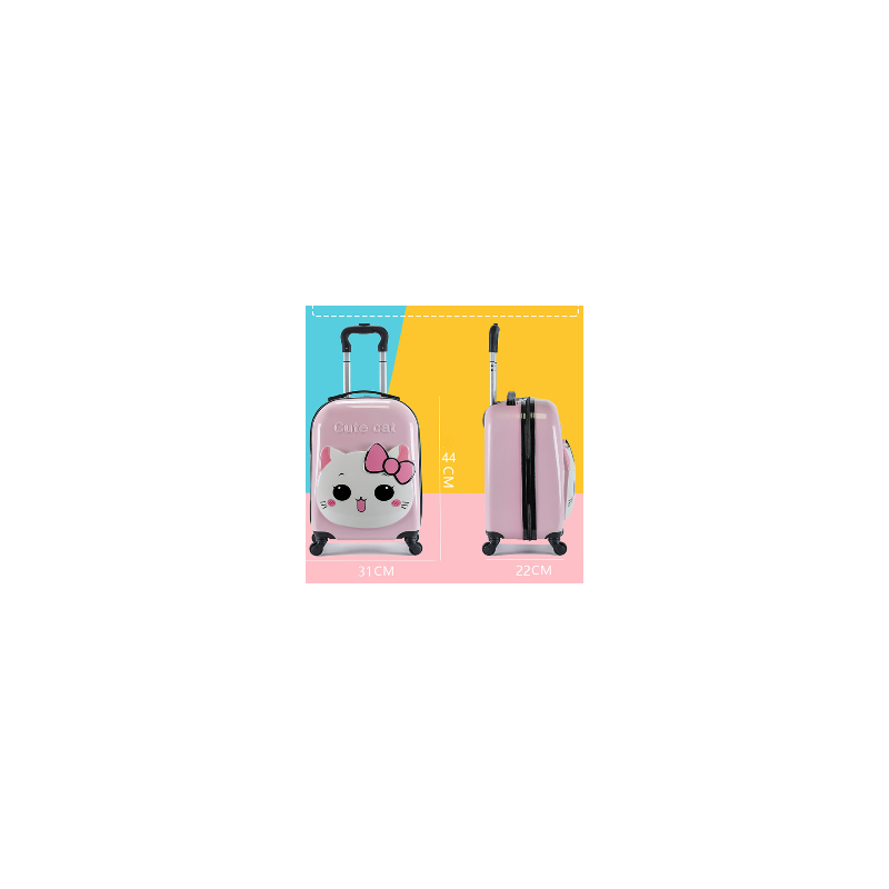 STYLOWA DZIECIĘCA WALIZKA PODRÓŻNA NA KÓŁKACH Walizka posiada wysuwaną rączkę teleskopową i zamek szyfrowy, wyposażona jest w cztery koła 360 st odporne na obciążenie. Dwuczęściowa komora chroni bagaż przed zniszczeniem, środek walizki jest całościowo wyłożony podszewką. Walizka dodatkowo wyposażona jest w pasy zabezpieczające wewnątrz, zapinana na dwustronny zamek błyskawiczny. Idealnie nadaje się do samolotu, będzie przydatna na wszelkiego typu wycieczki, wyjazdy wakacyjne, szkolne, czy przedszkolne wyprawy. Walizka została wykonana z tworzywa z ABS, wytrzymałego na uszkodzenia poliwęglanu. Wymiary: Szerokość: 31 cm Głębokość: 22 cm Wysokość z kółkami: 44 cm Wysokość z rączką: 74 cm Waga z opkowaniem: 2,63 kg