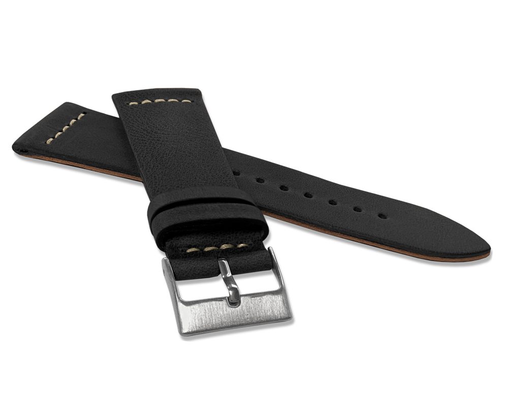 Hiszpańska skóra "Top Grain", z której wykonany jest ten pasek, jest często określana jako najlepsza skóra na świecie. Podczas gdy powszechnie dostępne paski skórzane zawierają jedynie sprasowane dolne warstwy skóry (tzw. "Genuine Leather"), w przypadku skóry "Top Grain" wybierane są jedynie najdelikatniejsze i najbardziej wytrzymałe części górnej skóry. Są one następnie cięte na precyzyjne kawałki, barwione organicznie przy użyciu naturalnych barwników i zszywane bawełnianą nicią, aby nadać im sportowy charakter. W słonecznej Hiszpanii, dzięki tej precyzyjnej pracy ręcznej powstają wyjątkowe, trwałe i giętkie paski z najlepszych na świecie materiałów, gotowe nadać Twojemu zegarkowi niepowtarzalny i luksusowy wygląd.