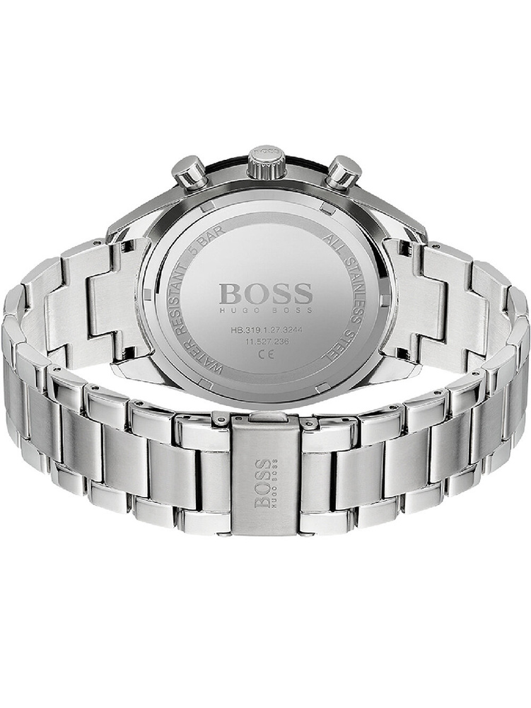 Marka: hugo boss • producent nr. : 1513862 • Seria producenta: Santiago 44 mm • Funkcje: 12-24 H, data, godzina, minuta, drugi • Ruch: bateria (kwarc) • Kolor wybierania: czarny • Wyświetlacz: Analog • Wodoodporny: 5 • Bezel: Stałą • Powierzchnia. Wykończenie: matowy, polerowany • Kolor obudowy: Srebrny • Materiał obudowy: stal nierdzewna • Grubość obudowy: 11 • Kształt obudowy: okrągły • Obudowa Szerokość: 44 • PuseBack: Screed, Stael Stael Bottom • Oświetlenie: Illum. Ręce, Illum. Indeksy • Styl: Sportowy • Materiał z paska: stal nierdzewna • Pasek Kolor: Srebrny • Szerokość występu: 22 • Zapięcie: Składanie Zapięcie • Maksymalne obwody nadgarstka: 200 • Waga przedmiotu: 0,14 • Zakres dostawy : Pudełko, opakowanie, dokument gwarancyjny. ”