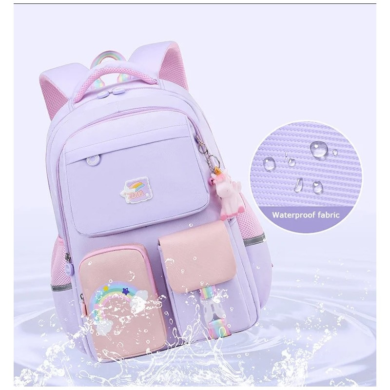 Wodoodporny dziecięcy plecak, szkolny z brelokiem Jest bardzo pojemny i praktyczny.