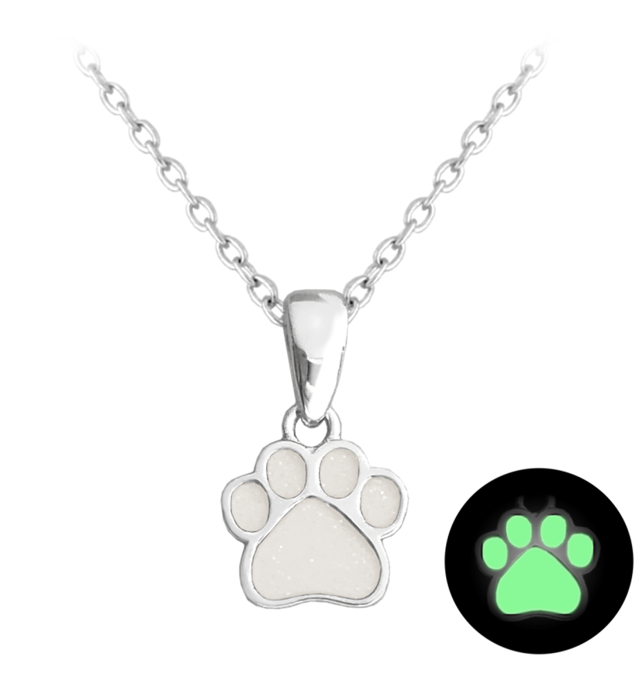 MINET Dziecięcy srebrny świecący naszyjnik ŁAPA