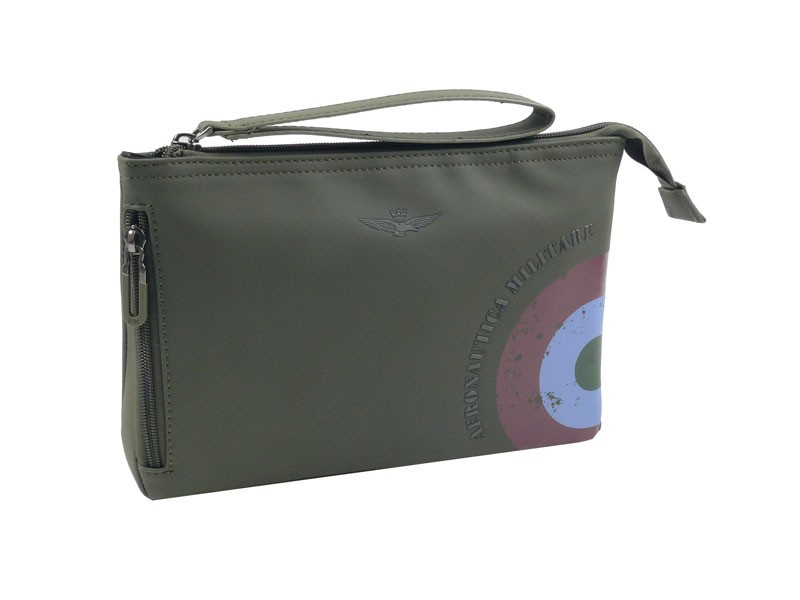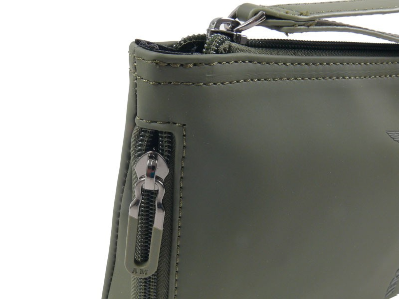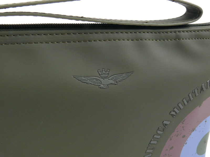 Saszetka męska , kosmetyczka włoskiej marki Aeronautica Militare z kolekcji Runway. Doskonale sprawdzi się w codziennym użytkowaniu do zabrania najpotrzebniejszych rzeczy. Wykonana z gumowanego poliestru o podwyższonej odporności na wilgoć i zabrudzenia. Doskonała do aktywnego stylu życia – niezależnie od pogody.    Zalety saszetki:   Solidna komora główna na zamek błyskawiczny to szybki dostęp i bezpieczeństwo przechowywanych drobiazgów, idealna jako lekki bagaż podręczny czy organizer podróżny. Odpinany pasek na nadgarstek  umożliwia wygodne noszenie w dłoni lub przypięcie do wnętrza większej torby. Przednia kieszonka na suwak do szybkiego schowania telefonu lub portfela. Wewnetrzna kieszeń zapinana na suwak. Lekka konstrukcja , łatwa do schowania w torbie lub plecaku, a jednocześnie na tyle stylowa, by pełnić rolę samodzielnego akcesorium dla świadomego mężczyzny. Charakterystyczne logo oraz wytłoczony napis Aeronautica Militare stanowią stylowy akcent przyciągający uwagę. Torba zaprojektowana w praktyczny i funkcjonalny sposób cechuję się niewielką wagą i starannym wykończeniem.