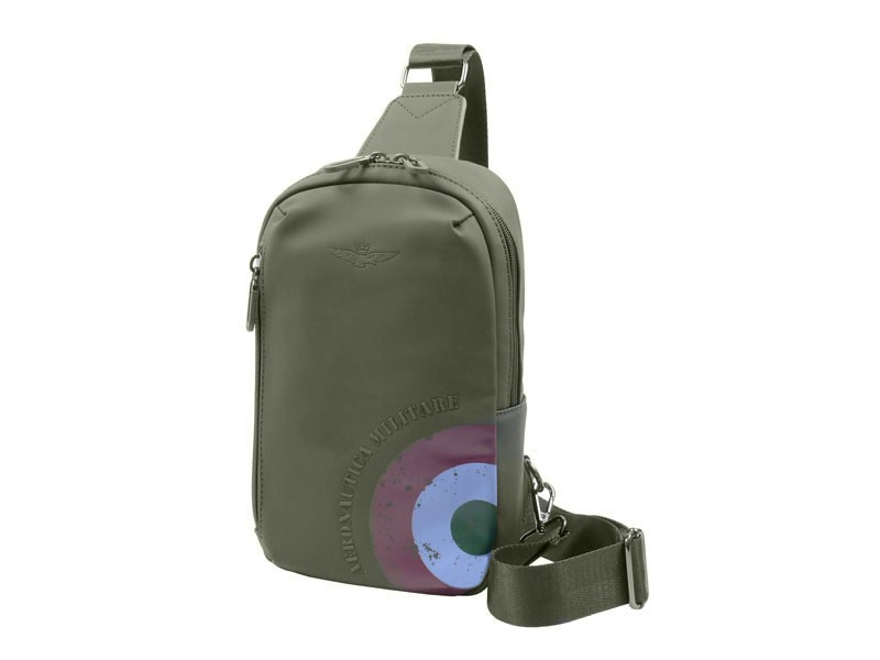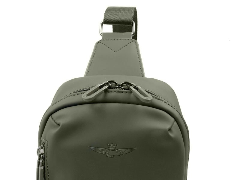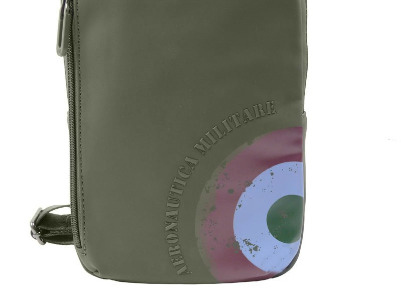 Plecak na jedno ramie - torba crossbody Aeronautica Militare z kolekcji Runway. Nowoczesny plecak typu crossbody, idealny dla osób w ruchu. Kompaktowy, lekki i wygodny – dzięki regulowanemu paskowi można nosić go na jednym ramieniu z przodu lub z tyłu.  Wykonany z trwałej, gumowanej tkaniny technicznej, która skutecznie chroni zawartość przed deszczem i zabrudzeniami. Dedykowany osobom które chcą się wyróżnić w miejskiej przestrzeni, nie rezygnując z funkcjonalności. Kompaktowe wymiary i pojemność doskonale sprawdzają się jako lekki bagaż podręczny lub plecak na co dzień, oferując wygodę i mobilność. Szczegóły plecaka na jedno ramię: Regulowany pasek na ramię umożliwia wygodne noszenie zarówno na prawym, jak i lewym ramieniu, z przodu lub z tyłu, zapewniając komfort w ruchu i pełną swobodę. Zewnętrzna, boczna kieszeń z suwakiem zapewnia szybki dostęp do telefonu czy portfela. Przednia kieszeń na najpotrzebniejsze drobiazgi.    Dedykowane przegrody i kieszonki utrzymują porządek w plecaku, ułatwiając przechowywanie dokumentów, ładowarki i innych akcesoriów. Miękko wyściełana tylna ścianka odciąża plecy podczas noszenia, minimalizując zmęczenie nawet przy dłuższym użytkowaniu. Na górnej części znajduje się dyskretne logo marki metalowe logo Aeronautica Militare, a dolna część ozdobiona jest wyrazistą grafiką z motywem włoskiej trójkolorowej flagi i napisem Aeronautica Militare , które podkreślają jej ekskluzywny wygląd.