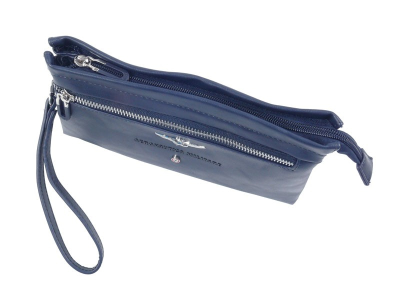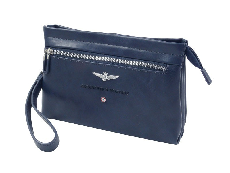 Saszetka męska - kosmetyczka Aeronautica Militare z kolekcji Performance. Kompaktowa saszetka z paskiem na nadgarstek to idealny wybór na codzienne wyjścia i podróże.Sprawdzi się zarówno w codziennych, jak i bardziej formalnych zestawieniach. Wykonana z wysokiej jakości skóry ekologicznej, odpornej na przetarcia i zachlapania. Posiada wewnętrzny organizer i kieszeń zapinaną na suwak, co pozwala zachować porządek i łatwy dostęp do najważniejszych rzeczy. Saszetka posiada dwie praktyczne komory – oddzielne przegrody pozwalają łatwo posegregować wszystkie niezbędne drobiazi. Metalowe zamki błyskawiczne gwarantują bezpieczeństwo przechowywanych przedmiotów. Odpinany pasek na nadgarstek służy do noszenia w ręce lub zawieszenia na przegubie dłoni zapewniając maksymalny komfort i pełną swobodę ruchu. Dodatkową opcją przenoszenia saszetki jest tylny uchwyt do trzymania w dłoni. Metalowe detale z charakterystycznym logo oraz wytłoczony napis Aeronautica Militare stanowią stylowy akcent przyciągający uwagę. Zaprojektowana w praktyczny i funkcjonalny sposób cechuję się niewielką wagą i starannym wykończeniem.