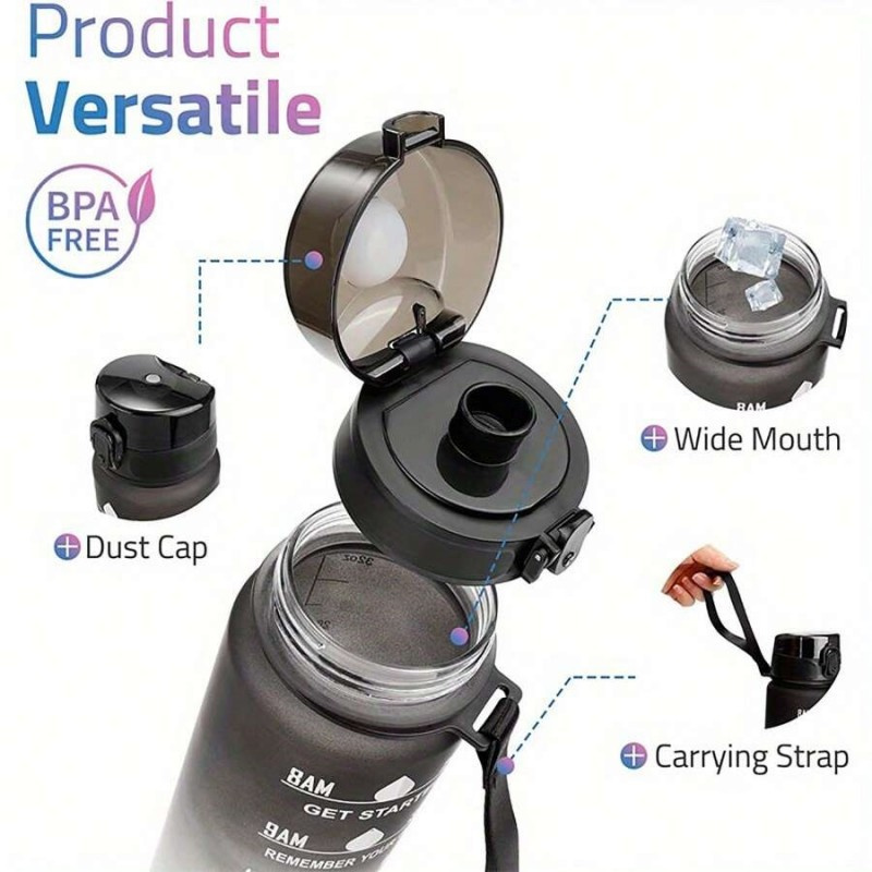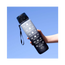 Specyfikacja: - Pojemność: 1000ml (średnica 7,5 cm, wysokość z zawleczką 28 cm), - Materiał: PC + PP + silikon - Bidon ze smyczą. - Duży i wygodny otwór do