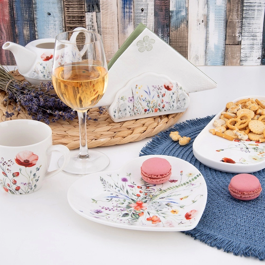- Wykonany z porcelany - Wykonany z najwyższej jakości porcelany w białym kolorze z efektownym dekorem w polne kwiaty. Odpowiednio użytkowany posłuży długie lata.