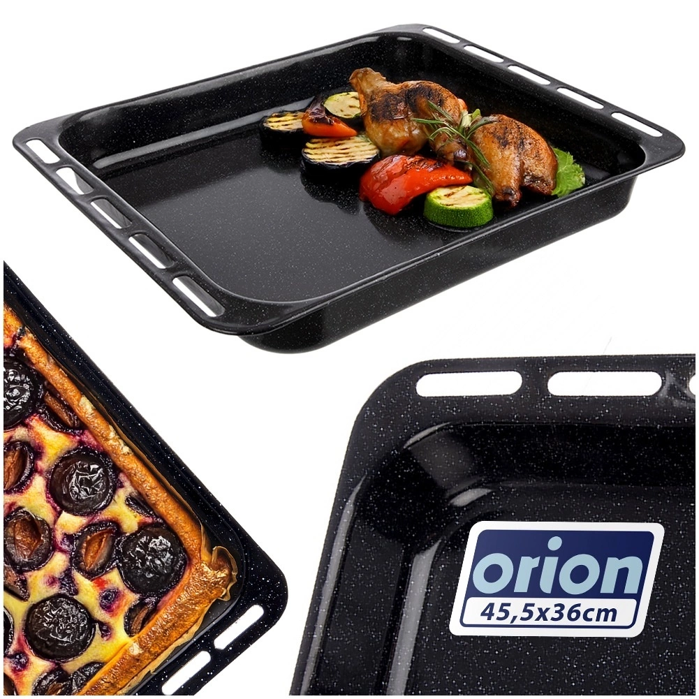 Emaliowana blacha do pieczenia to niezastąpiony element wyposażenia każdej kuchni. Ułatwia przygotowywanie różnorodnych potraw i gwarantuje trwałość oraz łatwe czyszczenie. Idealne do pieczenia słodkich i słonych potraw. Wykonane z najwyższej jakości materiałów, co zapewni komfort użytkowania. Oryginalny produkt czeskiej marki Orion. Wyprodukowano zgodnie z europejskimi standardami.