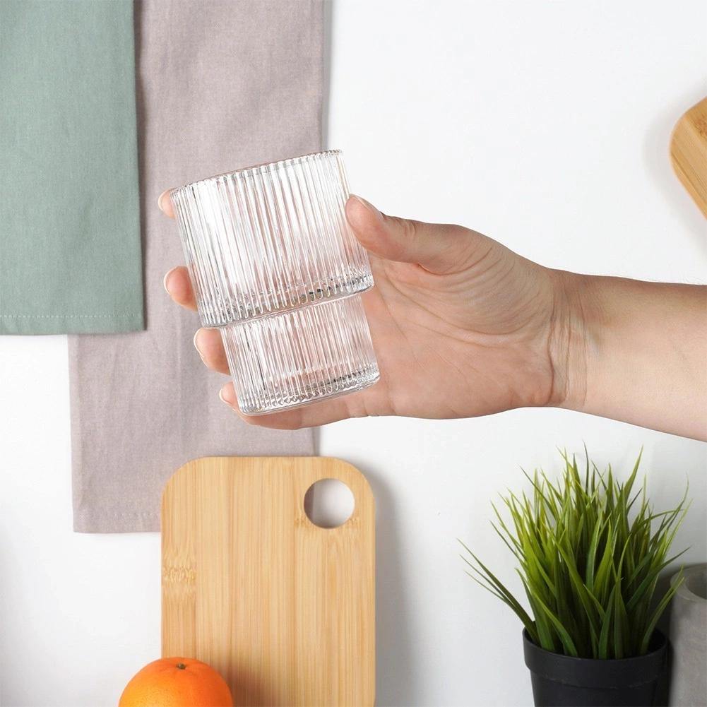 - Wykonane z ryflowanego szkła - Szklanki wykonane są z najwyższej jakości, grubego szkła w przezroczystym kolorze. Posiadają ryflowaną strukturę, która nadaje im elegancki i dekoracyjny wygląd oraz przyciąga wzrok.