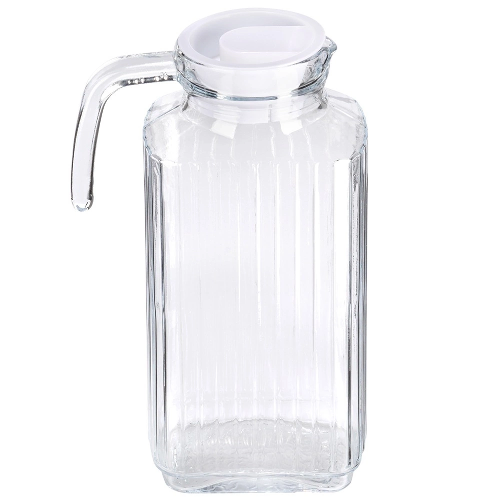 - Szklany dzbanek z pokrywką - Dzbanek do napojów w prostokątnym kształcie z pokrywką. Wykonany z najwyższej jakości, grubego szkła w przezroczystym kolorze. Posiada ryflowaną strukturę, która nadaje mu elegancki i dekoracyjny wygląd oraz przyciąga wzrok. Dzbanek pięknie prezentuje się na stole. Idealnie pasuje do każdej zastawy. Dzbanek ma pojemność 1,8 l oraz wymiary: 16 x 9 x 26 cm.