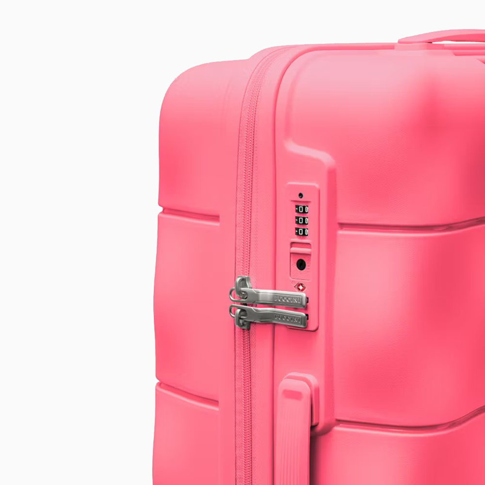 - dodatkowo wyposażona w wbudowany do wnętrza walizki zamek szyfrowy TSA (Travel Security Agency, bardzo przydatny w podróżach do USA)