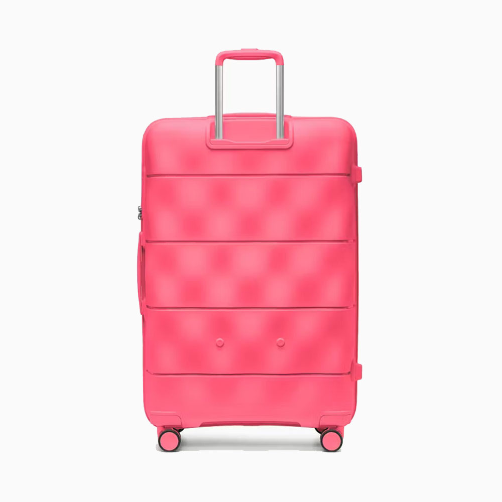 - walizka twarda wykonana z polipropylenu, materiału charakteryzującego się super lekką wagą i niezwykłą wytrzymałością