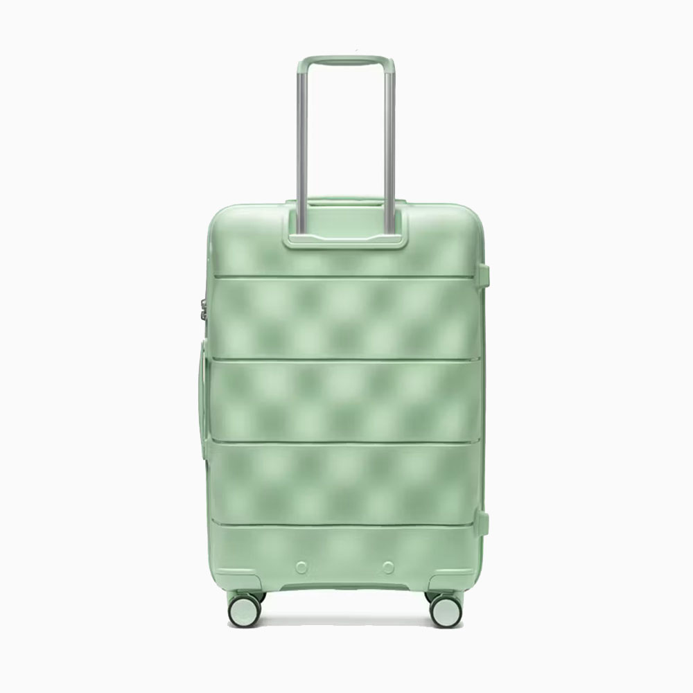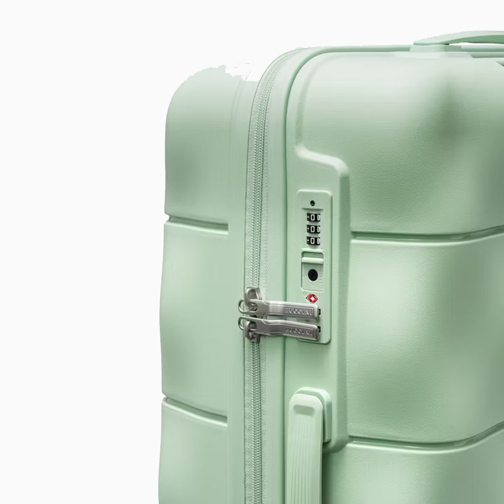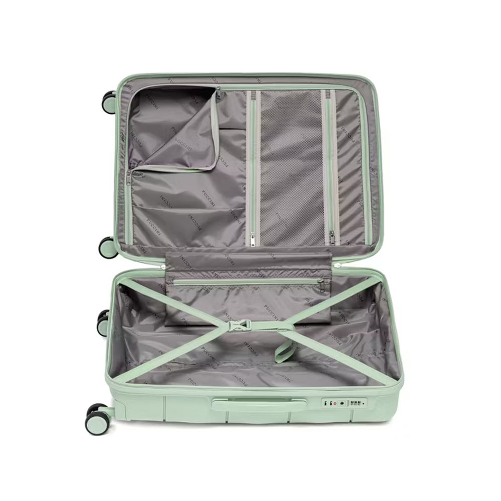 - walizka twarda wykonana z polipropylenu, materiału charakteryzującego się super lekką wagą i niezwykłą wytrzymałością