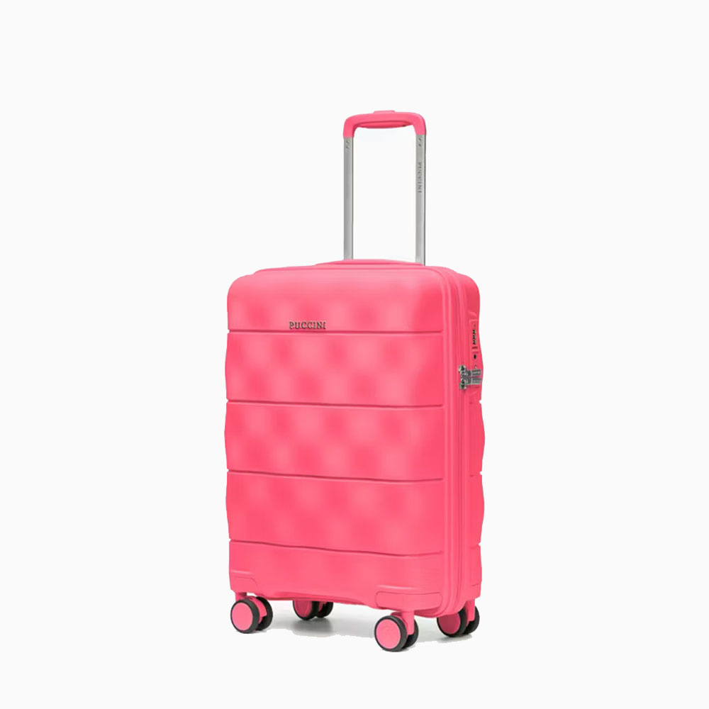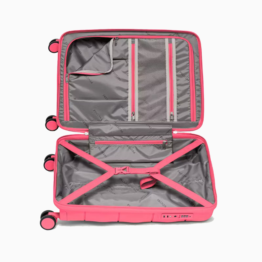 - walizka twarda wykonana z polipropylenu, materiału charakteryzującego się super lekką wagą i niezwykłą wytrzymałością