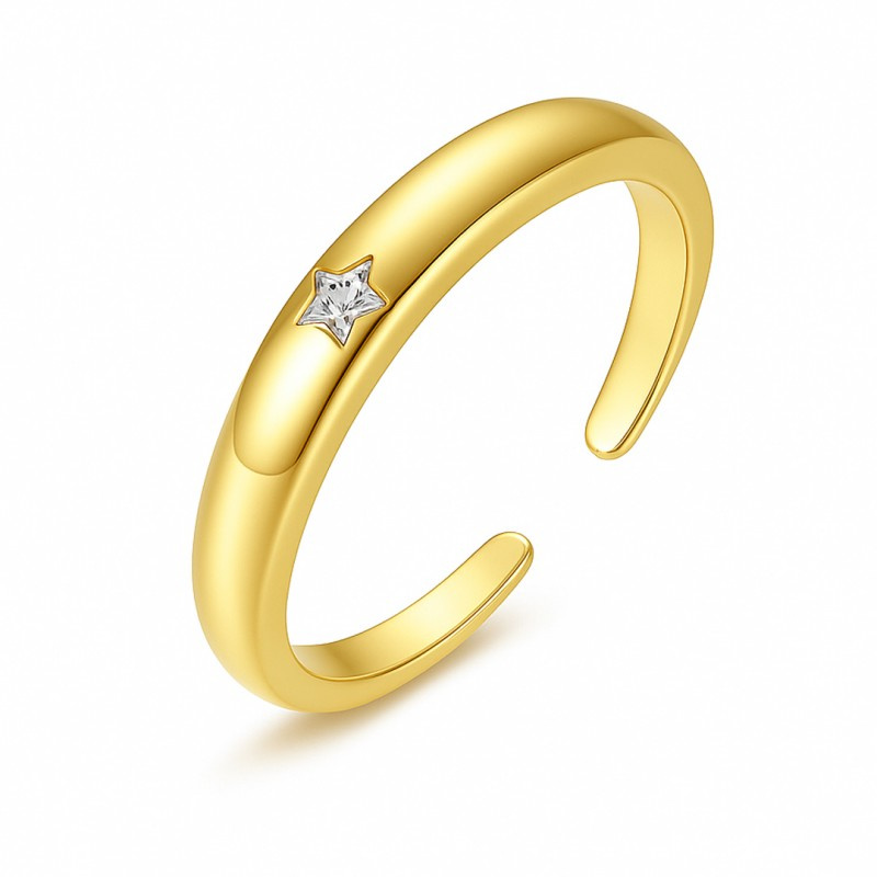 Nowa kolekcja biżuterii ze stali szlachetnej Pierścionek platerowany 14-karatowym złotem Rozmiar: regulowany, pasuje na R6 Szerokość: 1,7cm Waga: 2g netto/