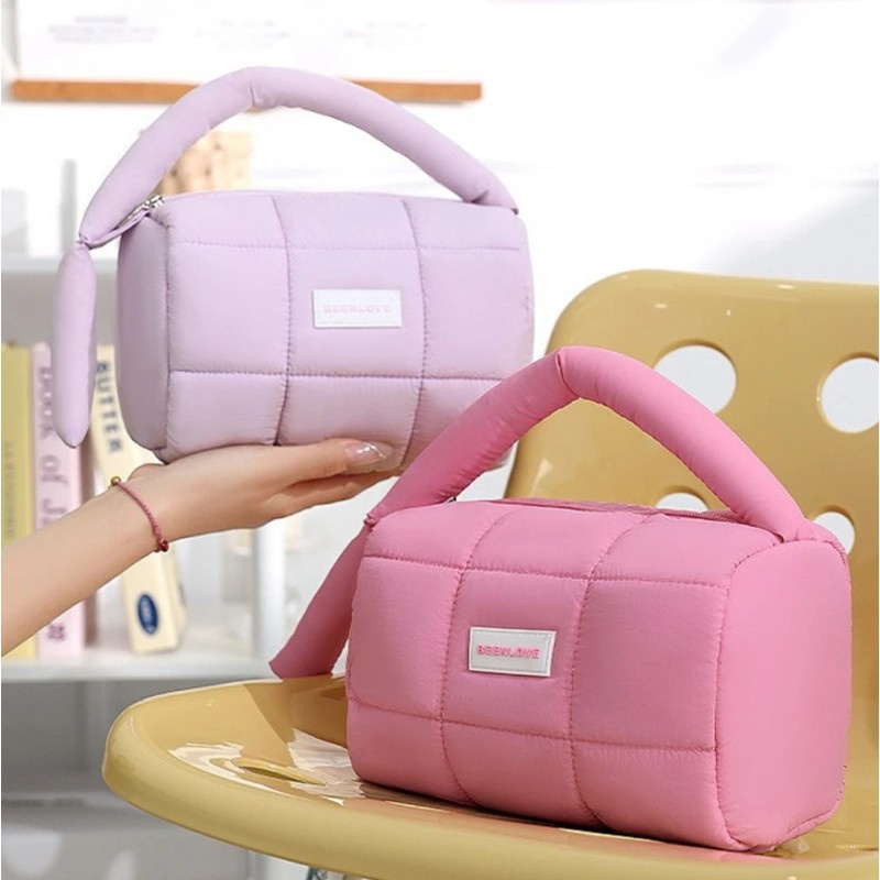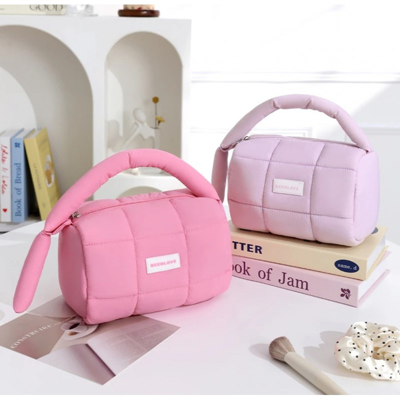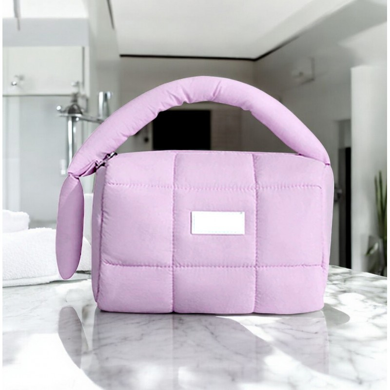 Kosmetyczka kuferek pikowana z rączką Wykonana z miękkiego, pikowanego materiału.