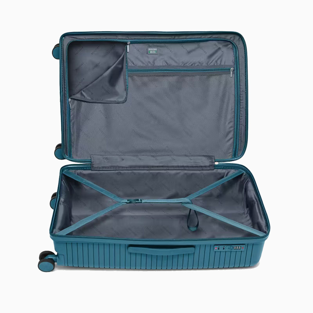 - walizka twarda wykonana z polipropylenu, materiału charakteryzującego się super lekką wagą i niezwykłą wytrzymałością