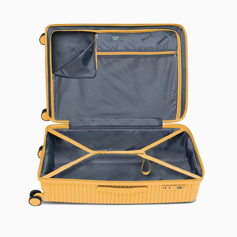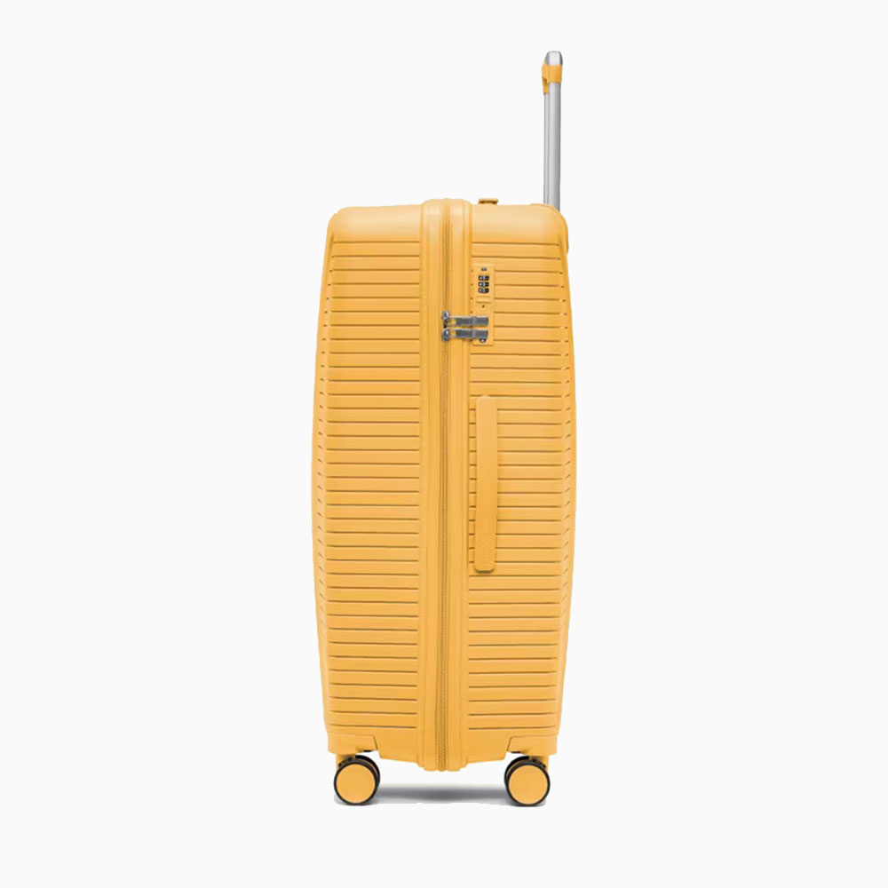 - walizka twarda wykonana z polipropylenu, materiału charakteryzującego się super lekką wagą i niezwykłą wytrzymałością