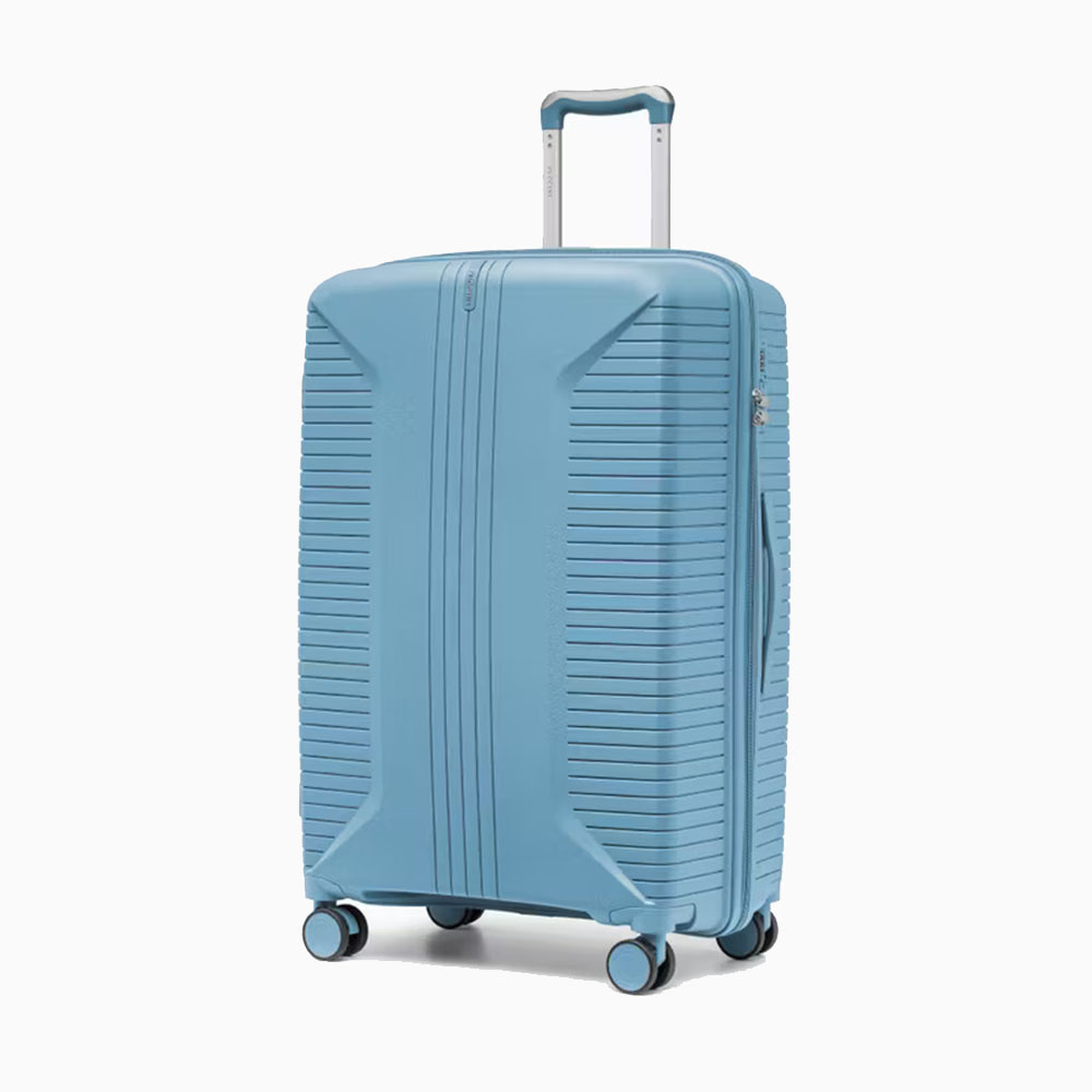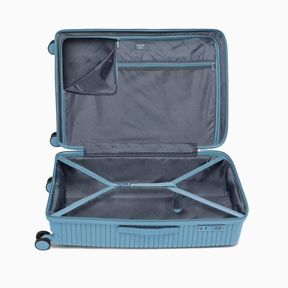 - walizka twarda wykonana z polipropylenu, materiału charakteryzującego się super lekką wagą i niezwykłą wytrzymałością
