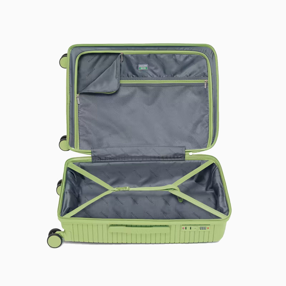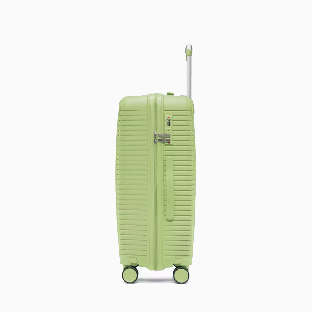 - walizka twarda wykonana z polipropylenu, materiału charakteryzującego się super lekką wagą i niezwykłą wytrzymałością