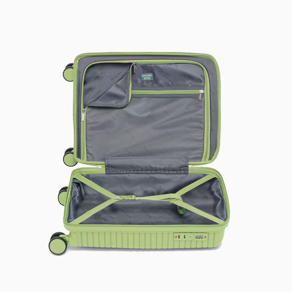 - walizka twarda wykonana z polipropylenu, materiału charakteryzującego się super lekką wagą i niezwykłą wytrzymałością
