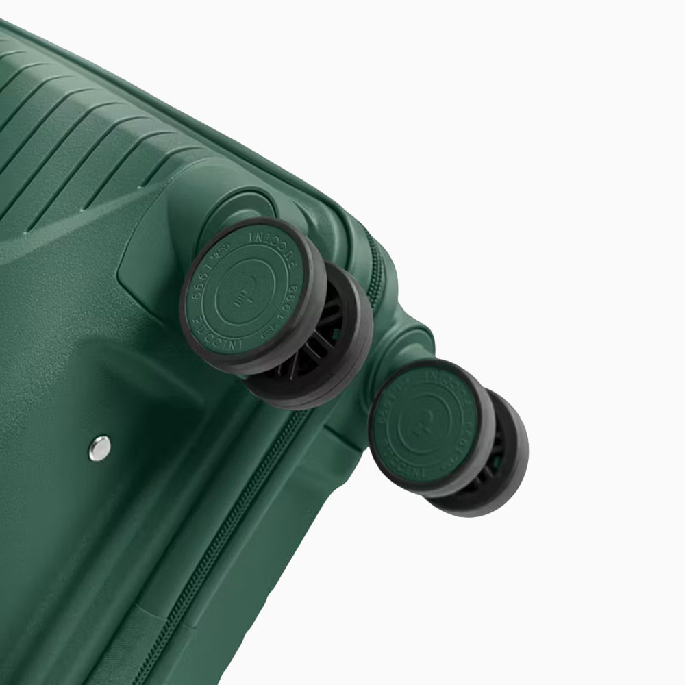 - walizka twarda wykonana z polipropylenu, materiału charakteryzującego się super lekką wagą i niezwykłą wytrzymałością