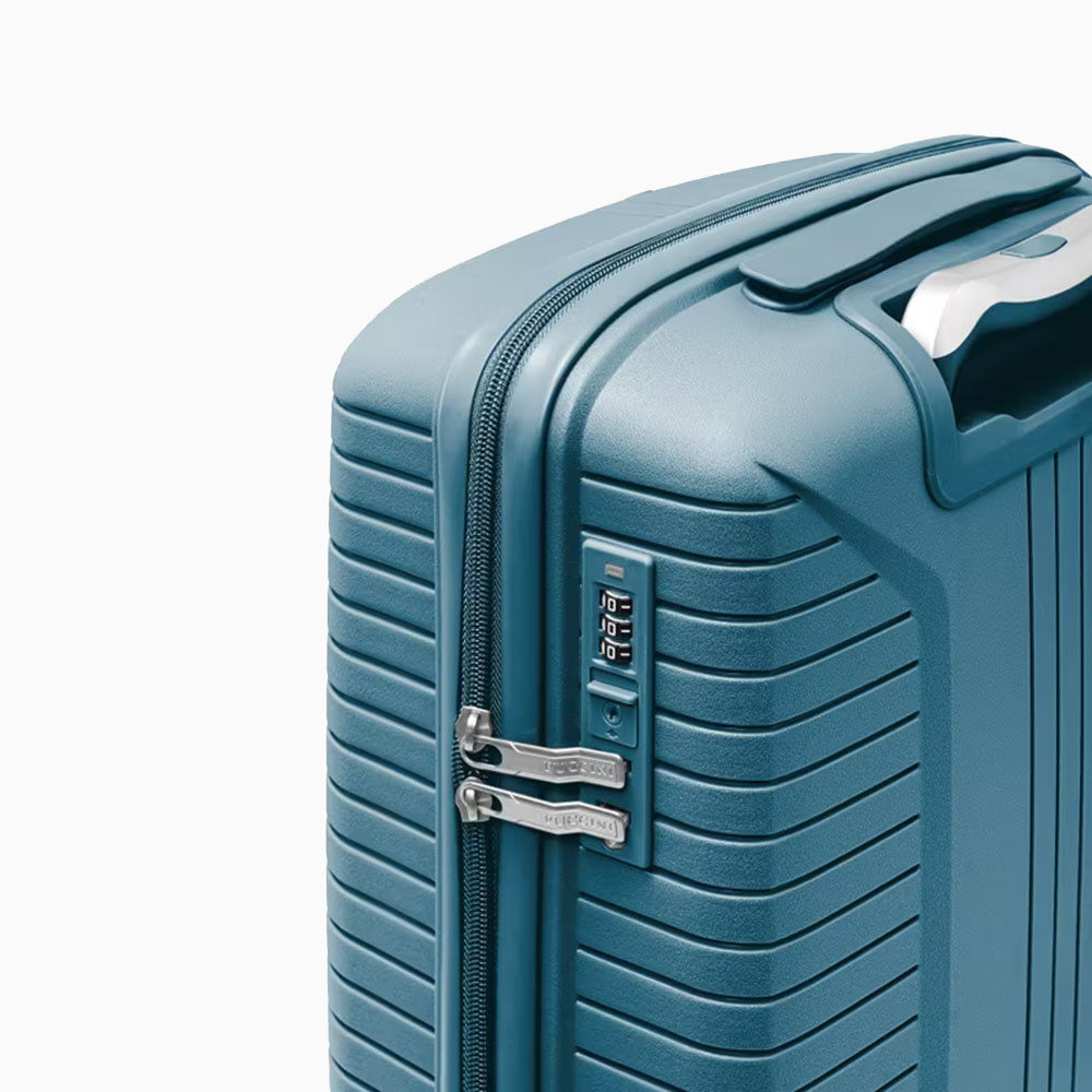 - dodatkowo wyposażona w wbudowany do wnętrza walizki zamek szyfrowy TSA (Travel Security Agency, bardzo przydatny w podróżach do USA)