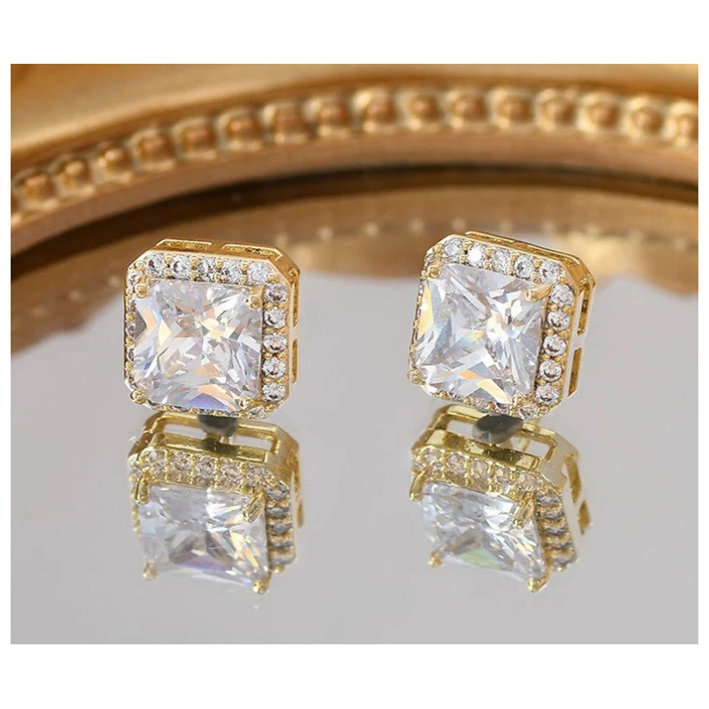 Wymiary kolczyków: 1,1 cm cm x 1,1 cm Wymiary kartonika: 6 cm x 5,5 cm Głębokość: 0,5 cm Waga: 7 g netto / 8 g brutto Kolor: jasne złoto Rodzaj zapięcia: