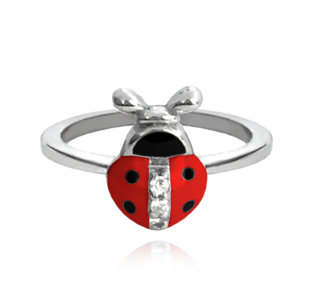 MINET Dziecięcy srebrny pierścień BIEDRONKA z cyrkoniami wielkość 8