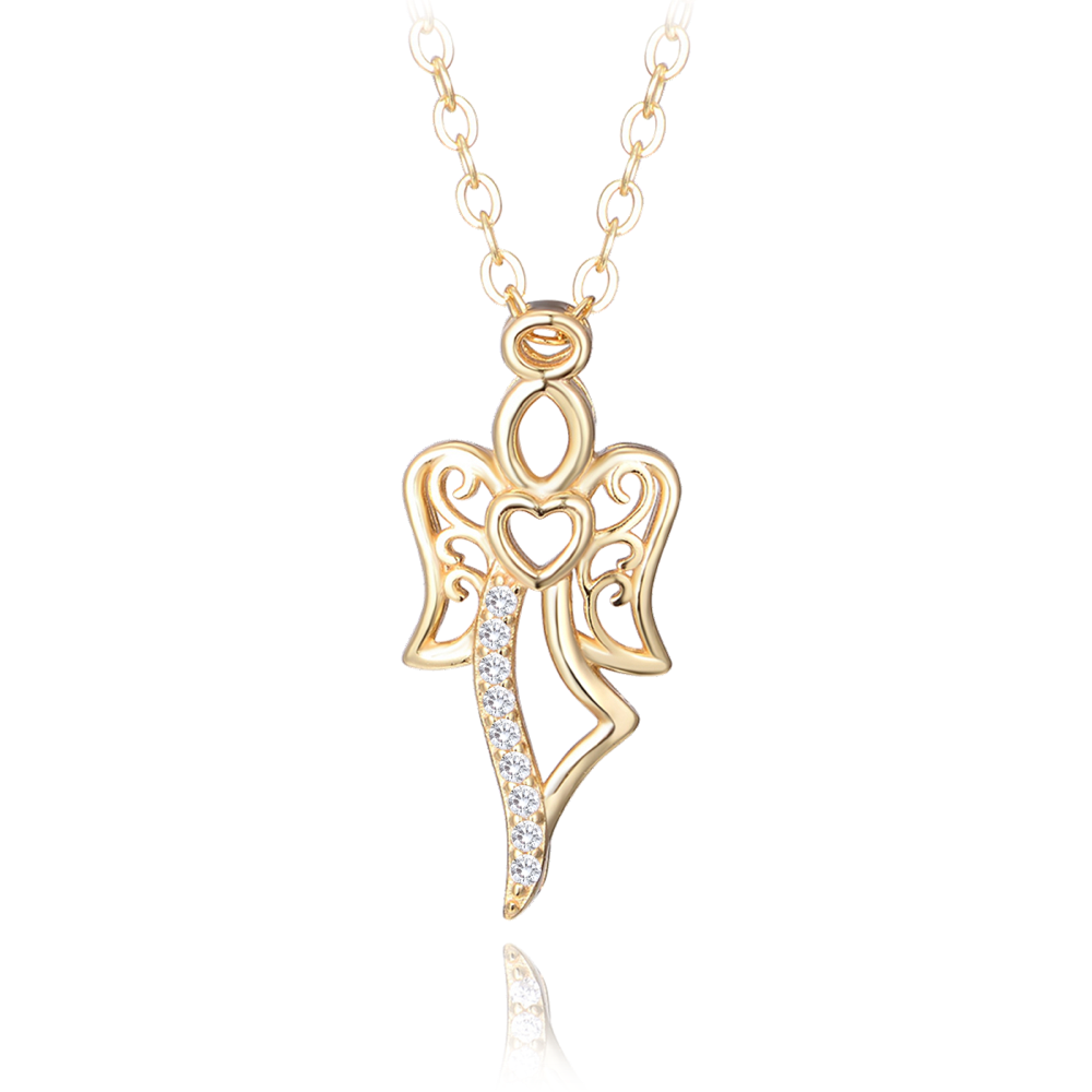 MINET Pozłacany naszyjnik srebrny ANIOŁ z cyrkoniami