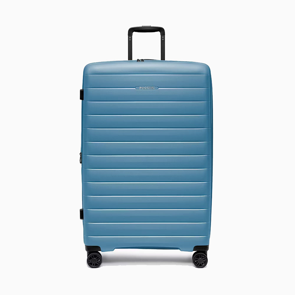 - walizka twarda wykonana z polipropylenu, materiału charakteryzującego się super lekką wagą i niezwykłą wytrzymałością