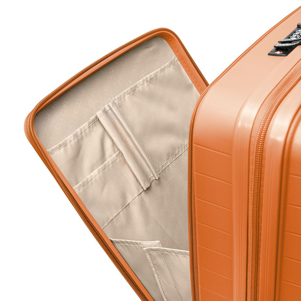 • walizka twarda wykonana z polipropylenu, materiału charakteryzującego się super lekką wagą i niezwykłą wytrzymałością