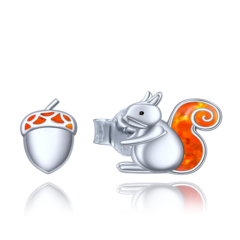 MINET Srebrne kolczyki wiewiórka i orzech z opalem