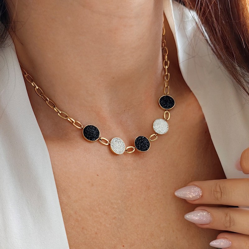 Modny naszyjnik ze stali szlachetnej platerowanej 14 - karatowym złotem Świetnie pasuje do eleganckich, jak również do codziennych stylizacji.