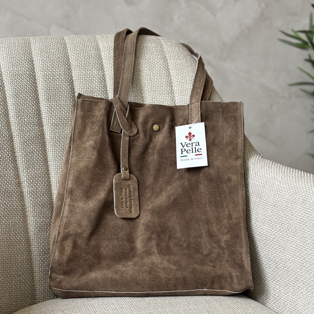 ORYGINALNA MODNA TOREBKA SHOPER DO RĘKI LUB NA RAMIĘ Z NATURALNEGO ZAMSZU